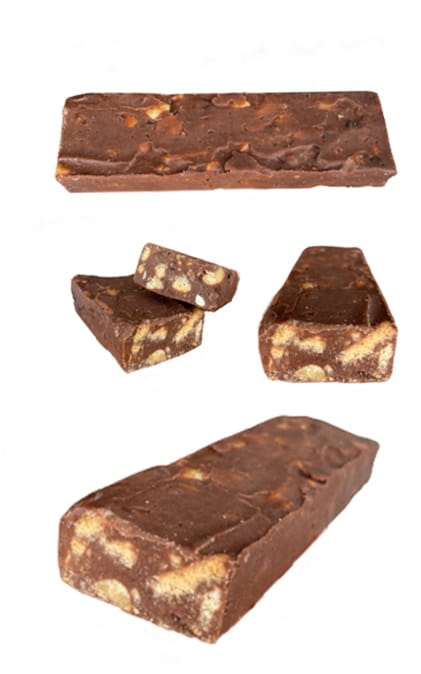Mleko w proszku, tłuszcze roślinne nieutwardzone, cukier, woda, orzechy arachidowe, daktyle, wafle (mąka pszenna, olej rzepakowy, emulgator lecytyny z soi, substancje spulchniające, rodzynki, kakao 2,08%, aromat