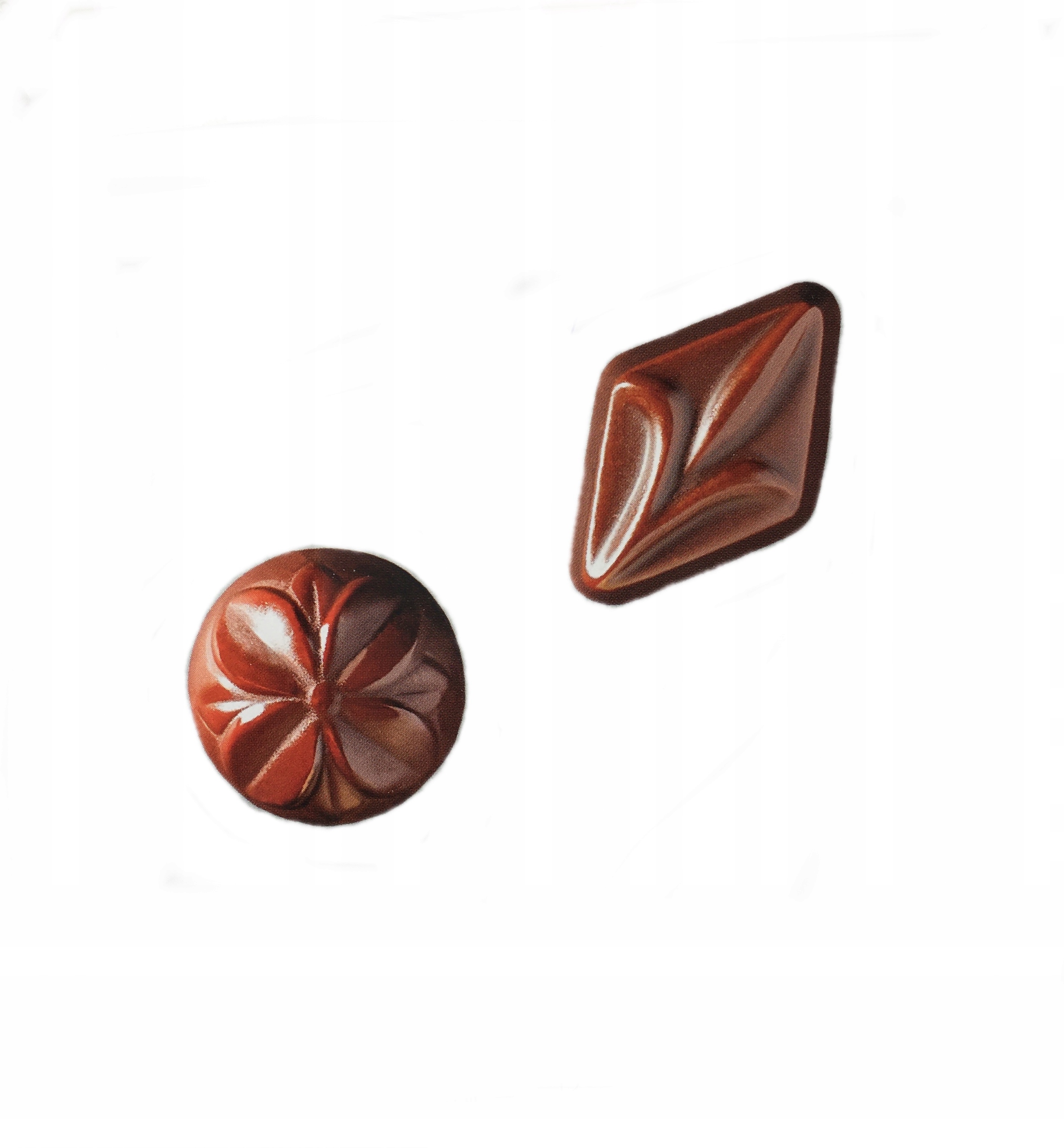 Praliny z czekolady z nadzieniami o smakach : kawowym, karmelowym, kakaowo-orzechowym i wiśniowym