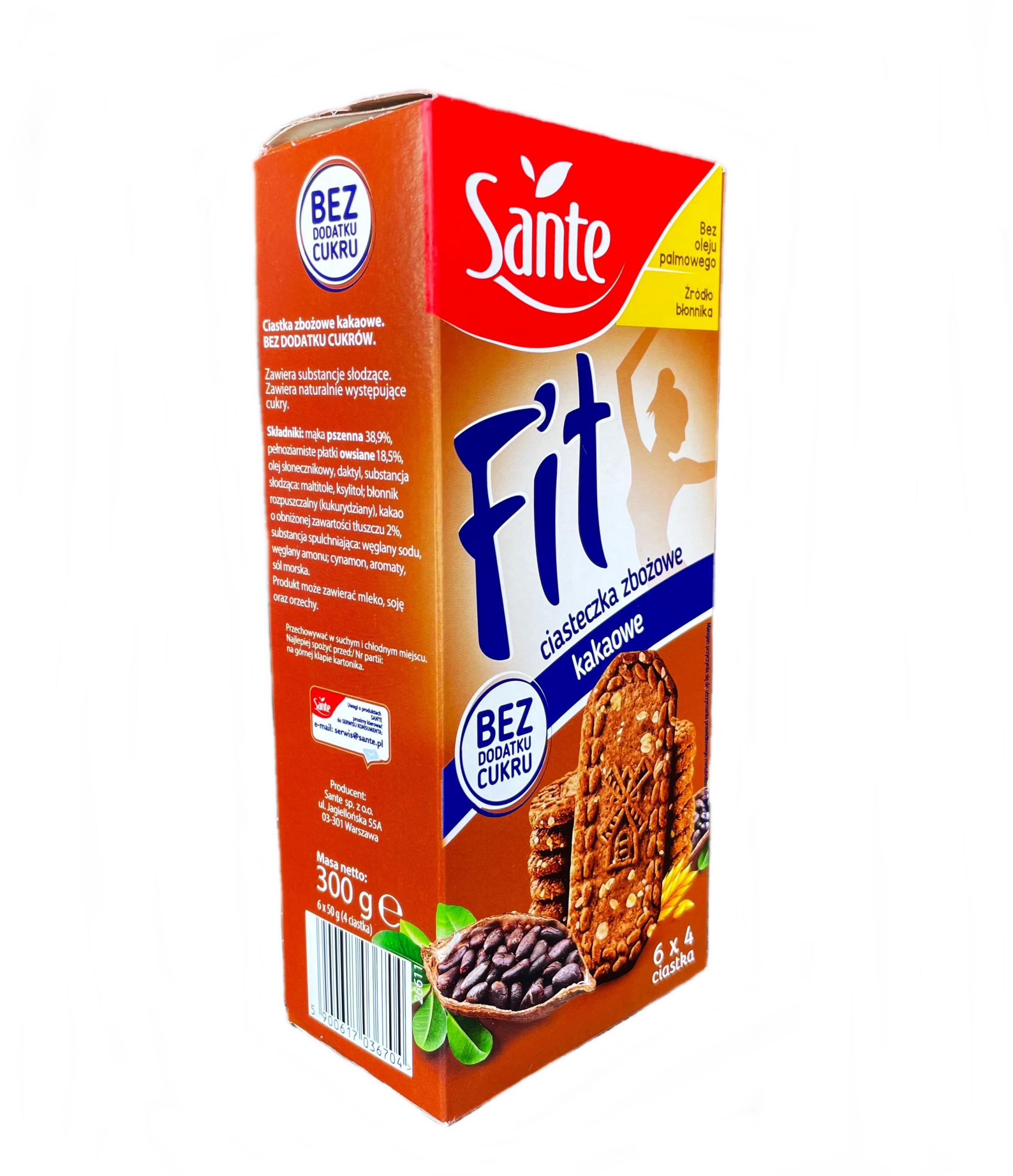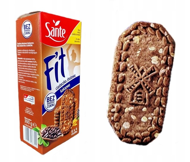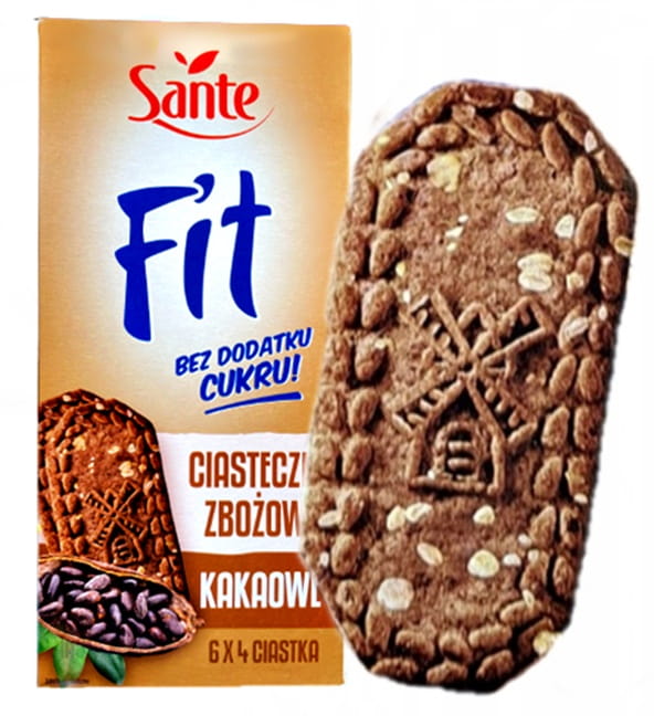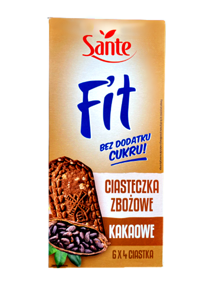 Ciastka Fit Zbożowe KAKAOWE Bez Dodatku Cukru SANTE 300g