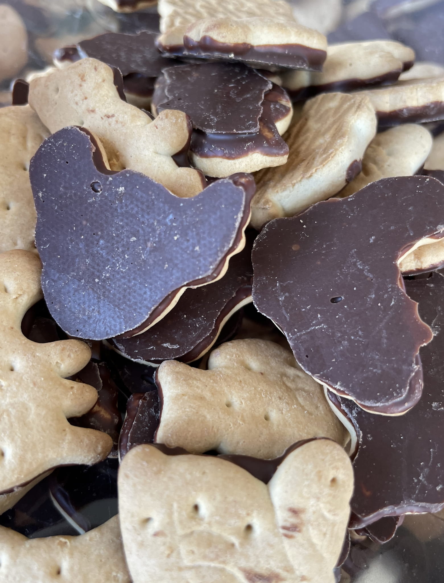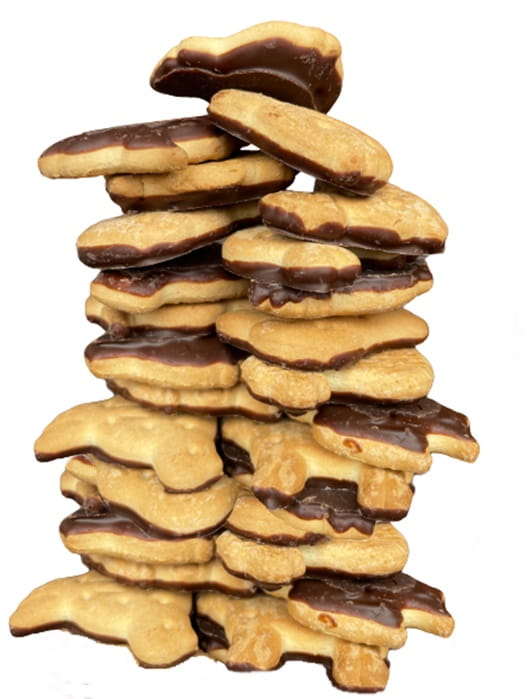 Ciasteczka w kształcie zwierzaków podlane czekoladą
