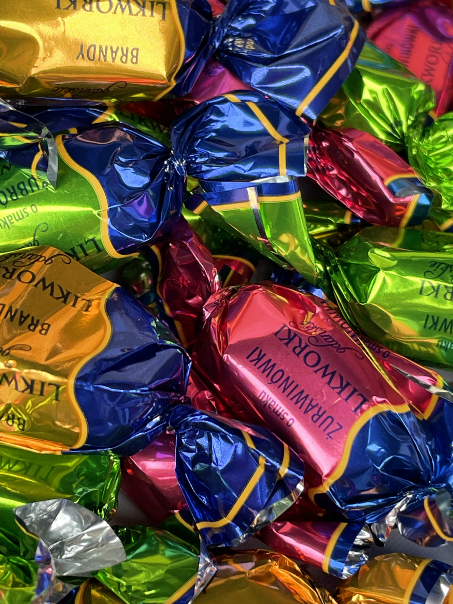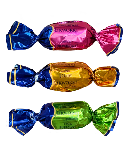 Cukierki o smaku "Brandy", "Żubrówka", "Żurawinówka" w czekoladzie (25%)