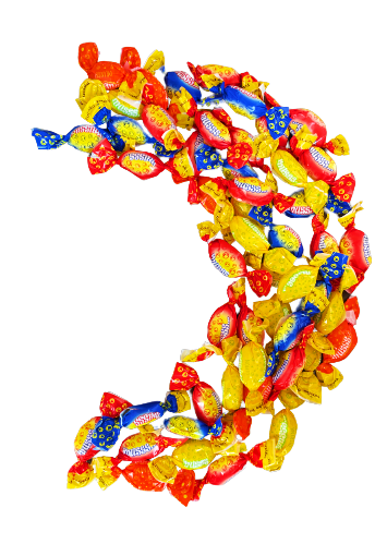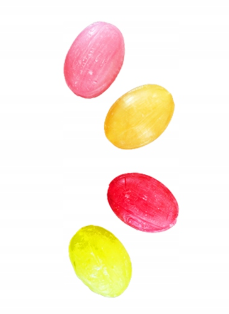 Karmelki musujące w soczyście owocowych smakach: dojrzałej wiśni, słodkich winogron, soczystej pomarańczy i orzeźwiającej cytryny