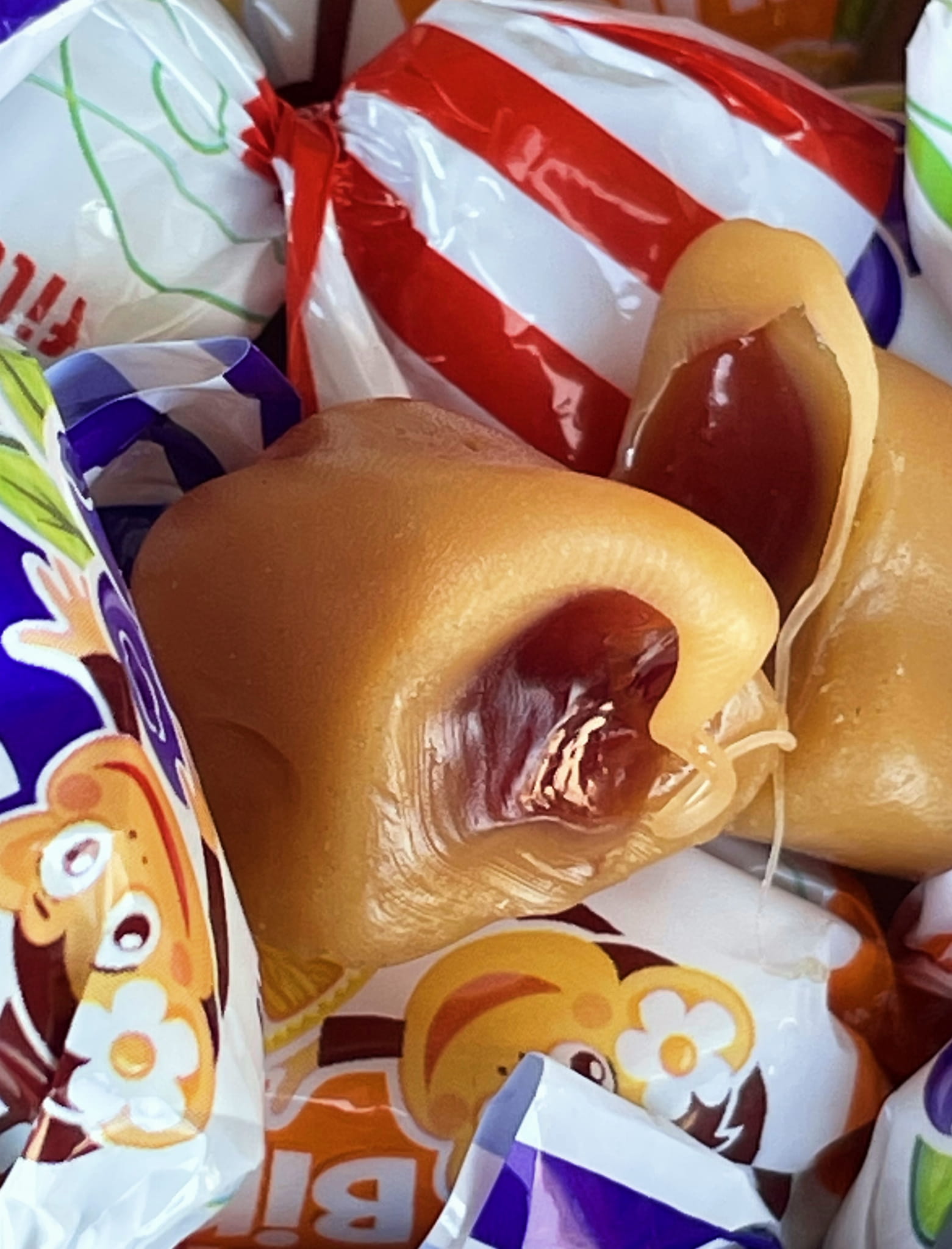 Cukierki nieglazurowane typu toffi z nadzieniem z galaretki