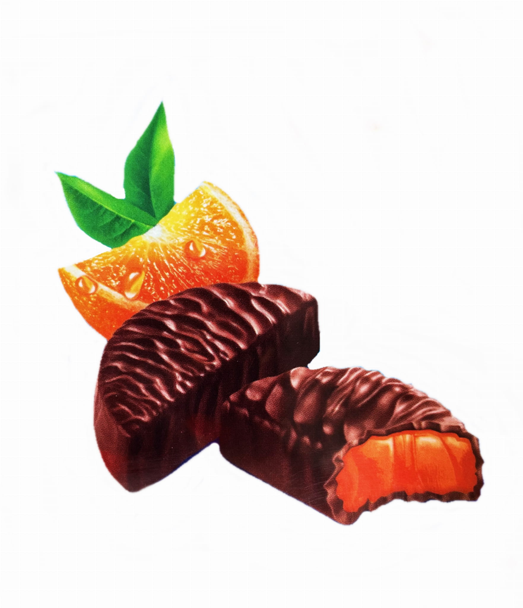 Cukier, czekolada 20 % (cukier, miazga kakaowa, tłuszcz kakaowy, emulgatory: lecytyny (z soi), E 476; aromat), syrop glukozowy, woda, substancja utrzymująca wilgoć: sorbitole, sok pomarańczowy odtworzony z zagęszczonego soku w proszku 2,5 %, substancja żelująca: pektyny, kakao o obniżonej zawartości tłuszczu, regulatory kwasowości: kwas cytrynowy, cytryniany sodu; aromat, barwnik: karoteny