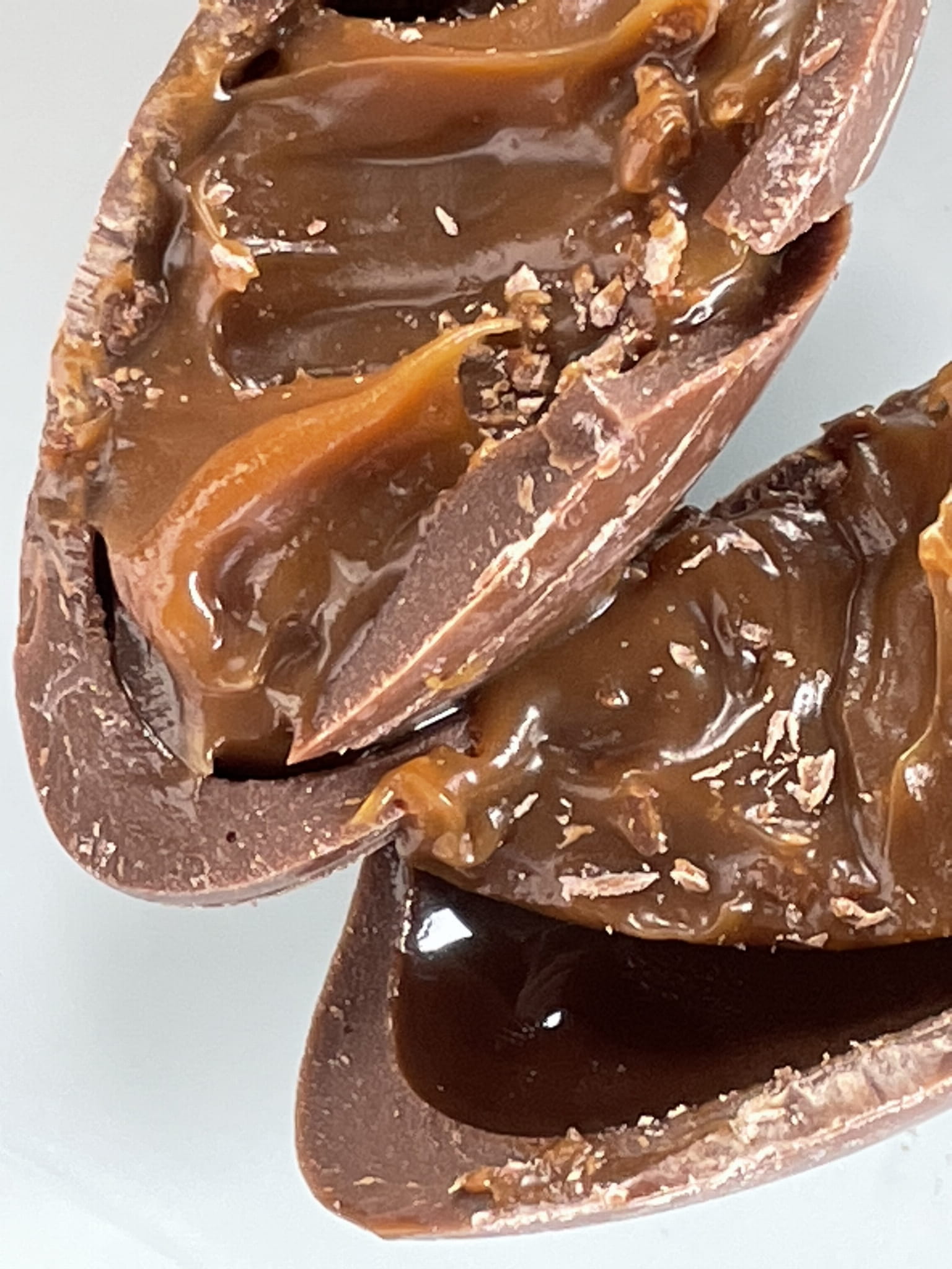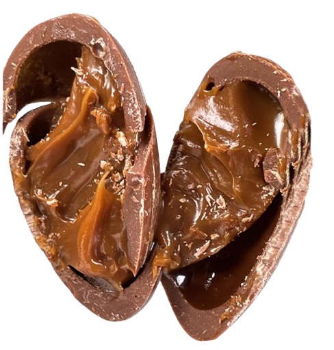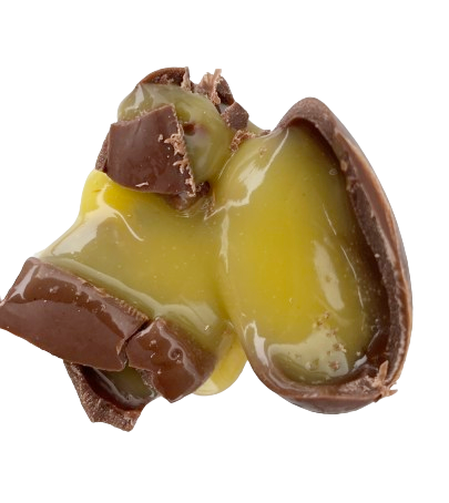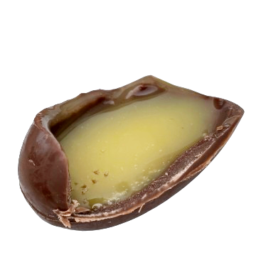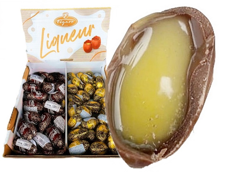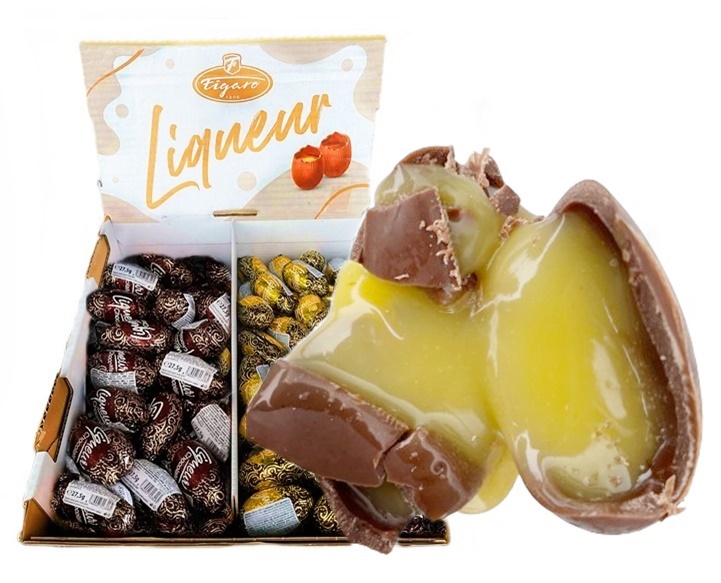 Delikatna, kremowa czekolada, kryjąca w swym wnętrzu aromatyczne, płynne nadzienie z lekką nutą alkoholu