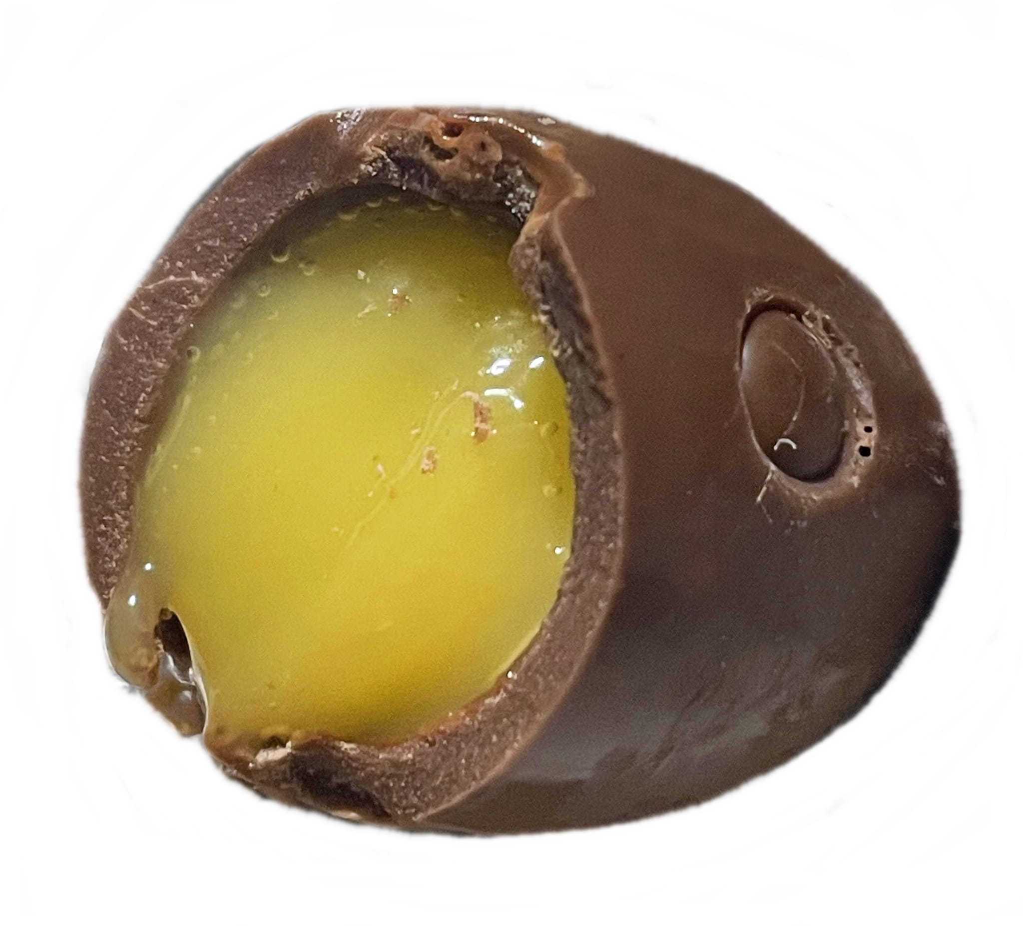 1. Czekolada mleczna (52%) z nadzieniem (48%) jajecznym z alkoholem: