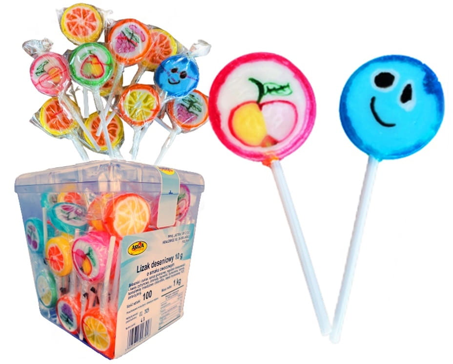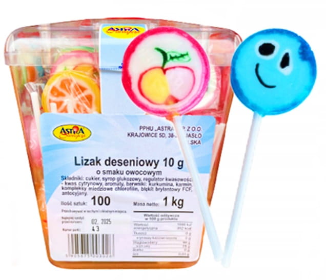 LIZAK DESENIOWY Mały Lizaki Owocowe PRL ASTRA 100 x 10g