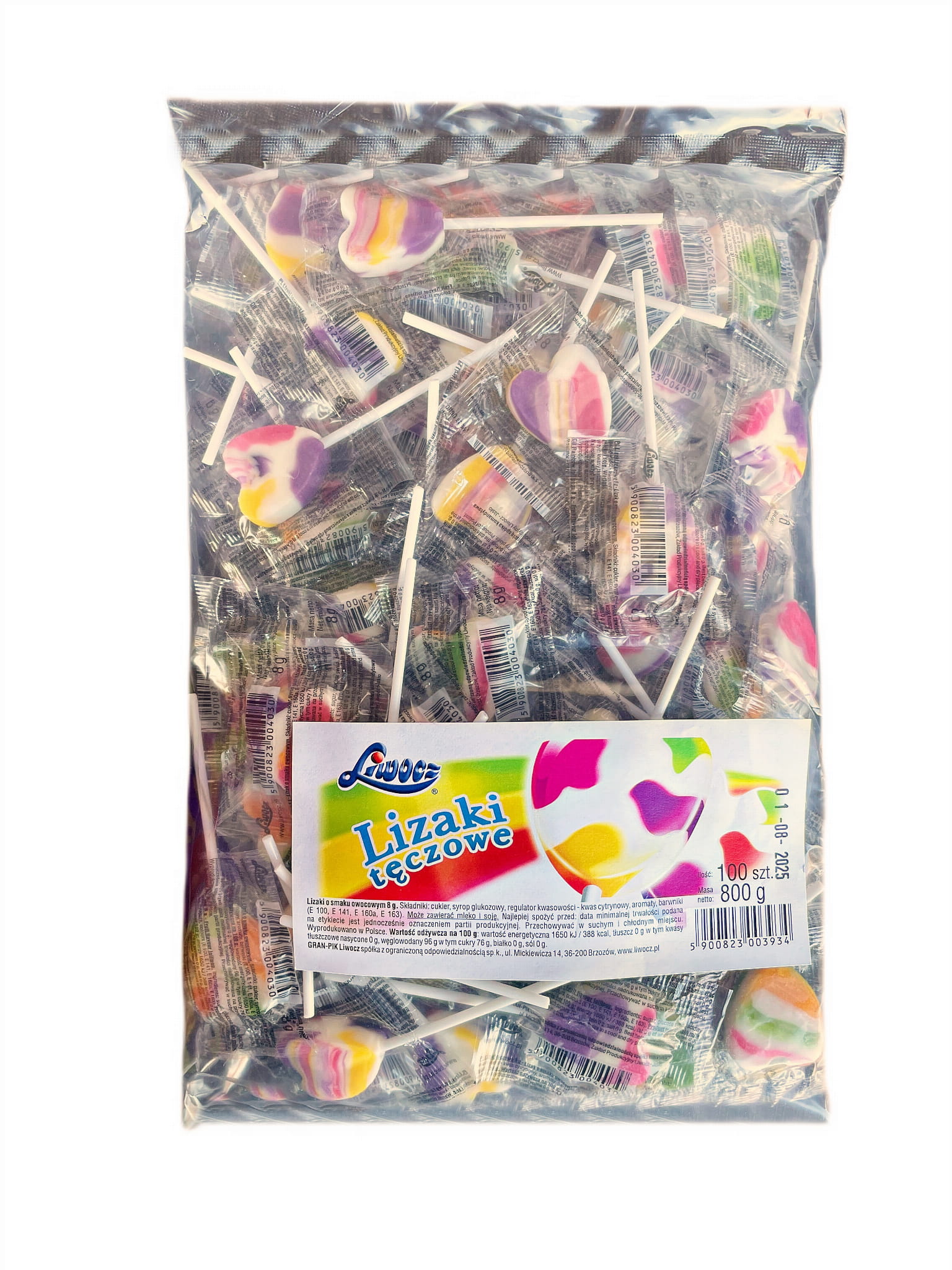Lizaki Serduszka TĘCZOWE Owocowe Serce Gran-pik LIWOCZ 100 x 8g