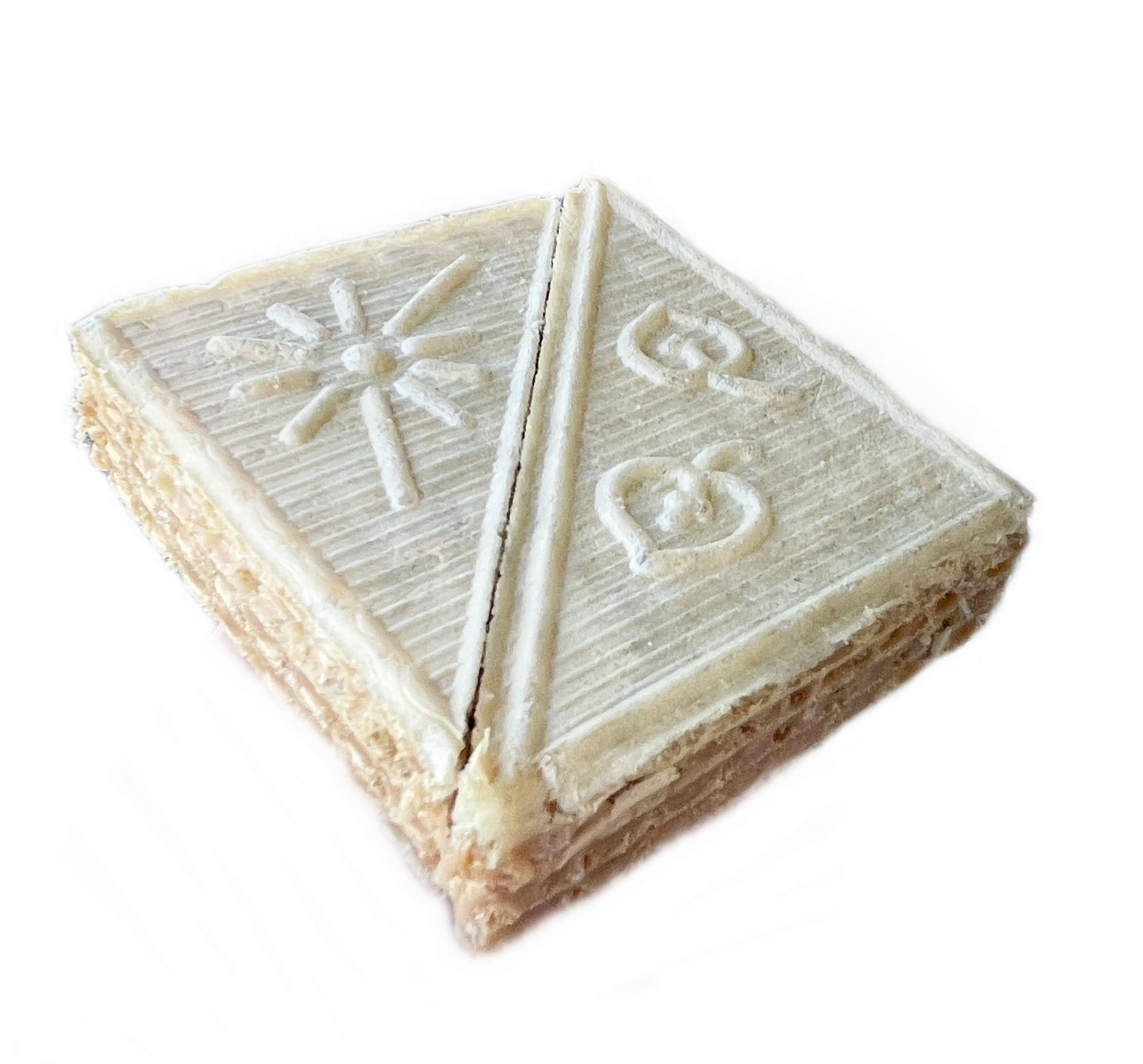 Płatki waflowe (mąka pszenna, olej rzepakowy, substancje spulchniające wodorowęglan amonu, wodorowęglan sodu