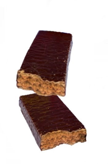 Pyszny, chrupiący wafelek, przekładany kremem kakaowym w czekoladzie