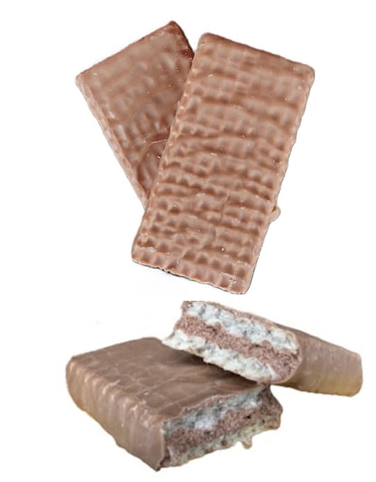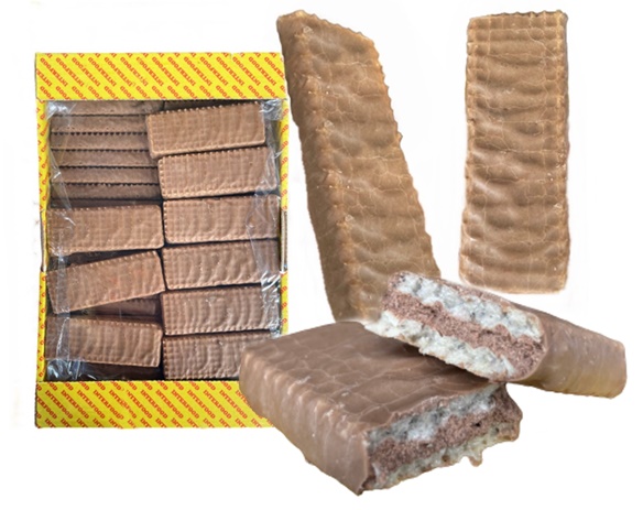 Delikatne i chrupiące wafelki z kremem kakaowym, oblane cienką warstwą polewy