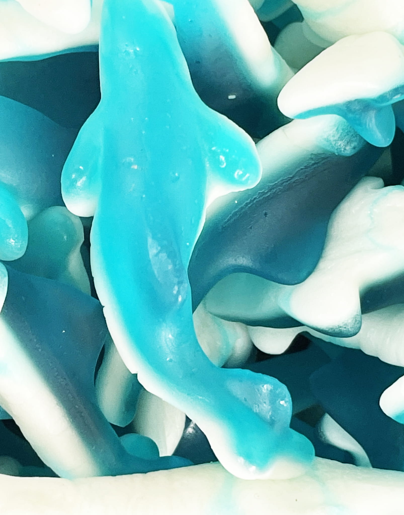 Syrop glukozowy; cukier; żelatyna spożywcza; kwasy: kwas cytrynowy, kwas mlekowy; substancja utrzymująca wilgoć: sorbitol; aromat; barwnik: błękit patentowy V; substancje glazurujące: wosk pszczeli (biały i żółty); wosk carnauba