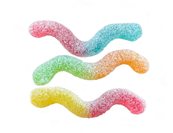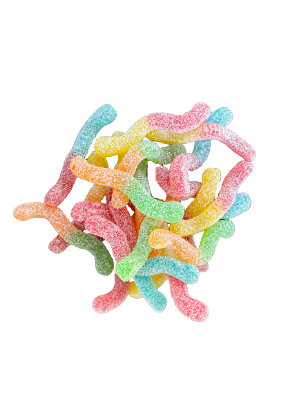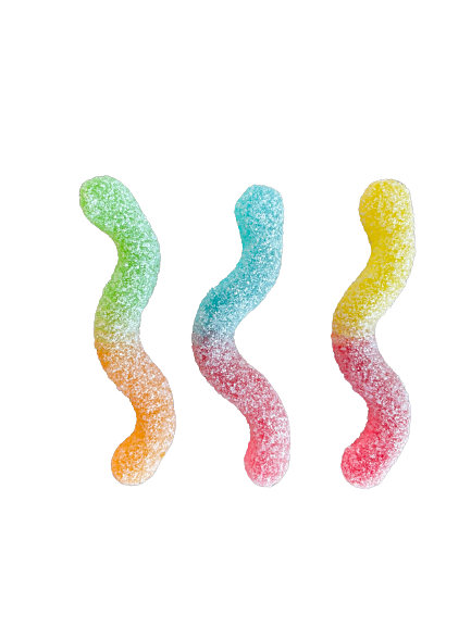Żelki o smaku kwaśno - owocowym, w kształcie kolorowych robaczków