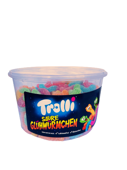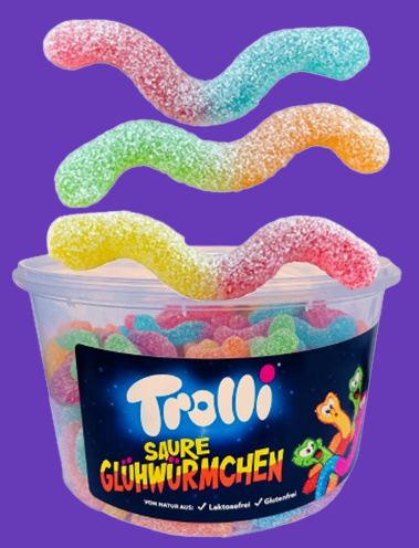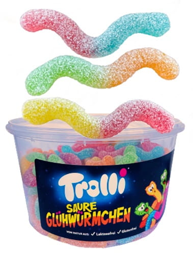 Żelki ROBAKI Sour Glowworms Kwaśne Owocowe Bez Glutenu TROLLI 150 x 7g